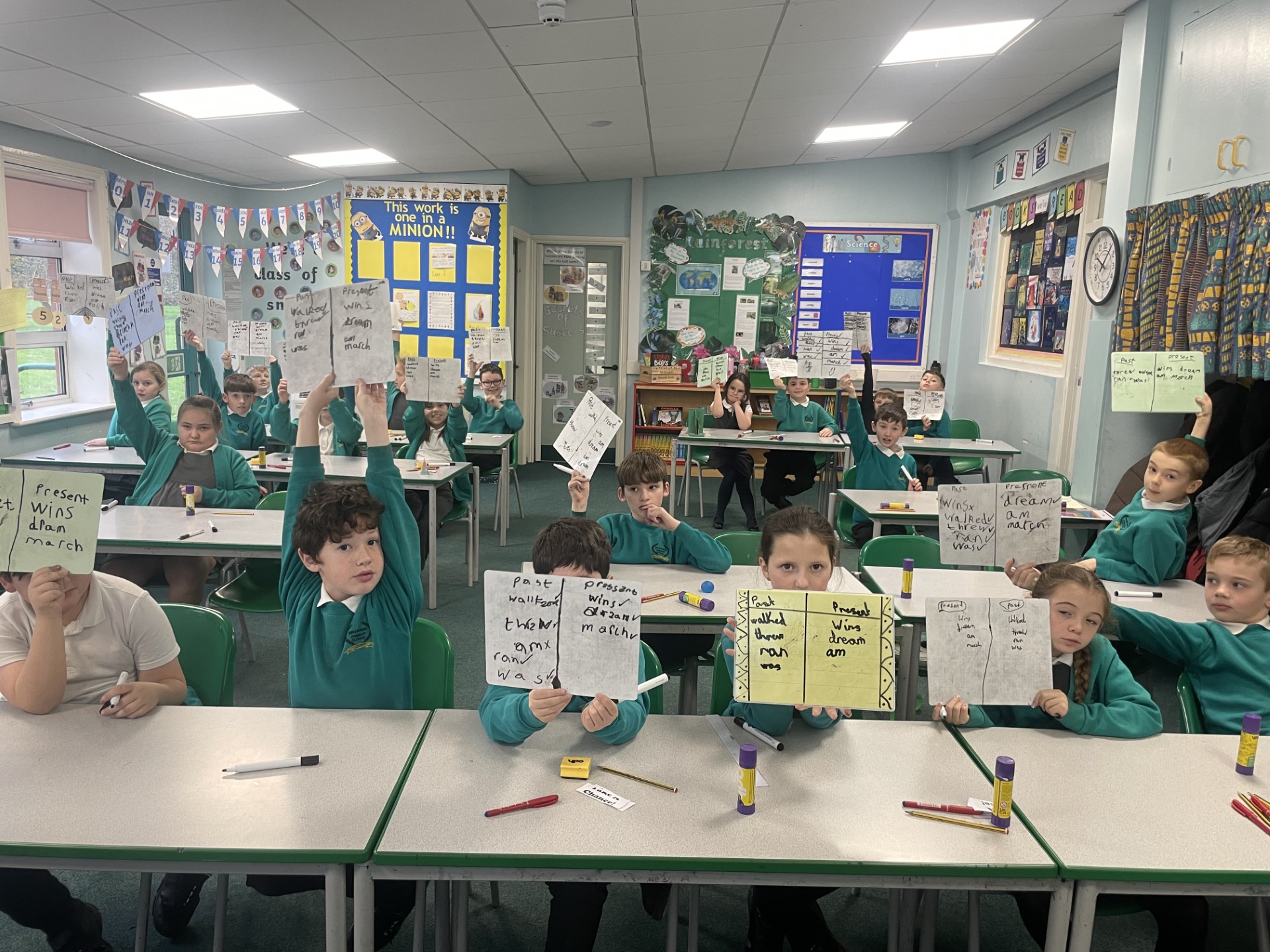 This week, children have been busy strengthening their understanding of verb tenses. We began by revisiting the past and present tense, looking closely at how verbs change depending on when an action happens. Through games, sorting activities, and sentence challenges, the children have grown much more confident in spotting and using these tenses correctly.