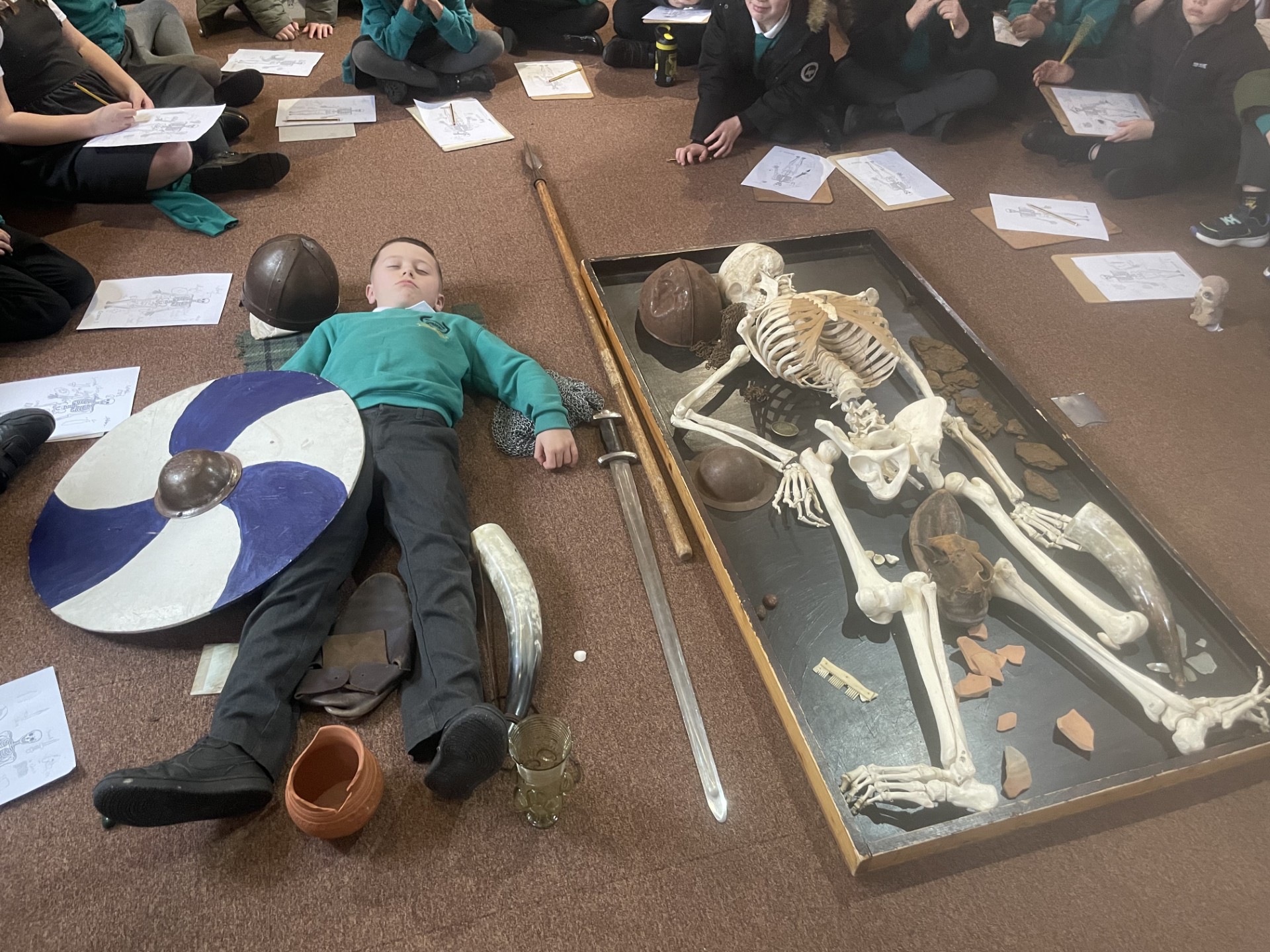 A particular highlight of the trip was the chance to examine artefacts found in an Anglo-Saxon grave. By studying these carefully, the children were able to piece together clues about the lives, beliefs, and status of the people buried with them—just like real archaeologists. This hands-on experience helped them understand how objects can reveal stories about the past.